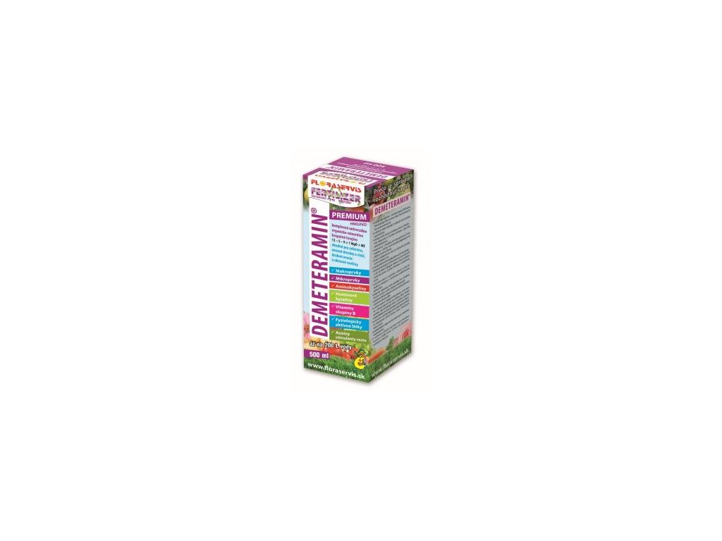 Zvýšená obranyschopnosť rastlín – proti škodcom, mrazu, suchu a iným stresom Podpora regenerácie – pomáha rastlinám zotaviť sa po poškodení Neutralizácia stresu po chemickej ochrane – šetrí rastlinu a udržiava jej rovnováhu Univerzálne využitie – pre zálievku, postrek, kvapkovú závlahu, obohatenie substrátov aj kompostu DEMETERAMIN odporúčame každému, kto chce pestovať zdravé, odolné a krásne rastliny:- pre záhradkárov aj profesionálnych pestovateľov, - na zeleninu, ovocie, kvety, dreviny, izbové rastliny, - vhodný na voľnú pôdu, skleníky, kvetináče aj substráty, - výnimočne vhodný pri ekologickom a prírodnom pestovaní.Vyrobené na Slovensku s hrdosťou DEMETERAMIN je v súčasnosti jediným špeciálnym organominerálnym hnojivom v hobby balení, vyrábaným na Slovensku. Je výsledkom domáceho výskumu, dlhoročných skúseností a úcty k pôde.